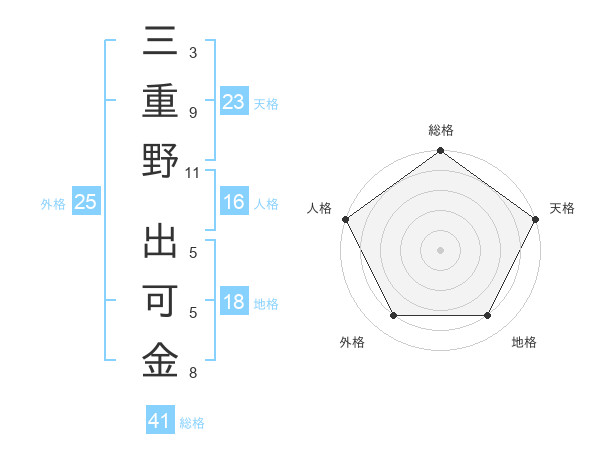 三重野 出可金さんを姓名の画数から五運を鑑定