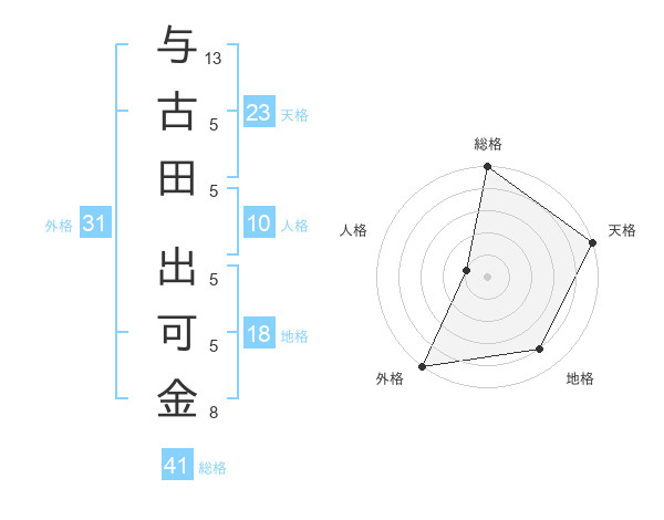与古田 出可金さんを姓名の画数から五運を鑑定