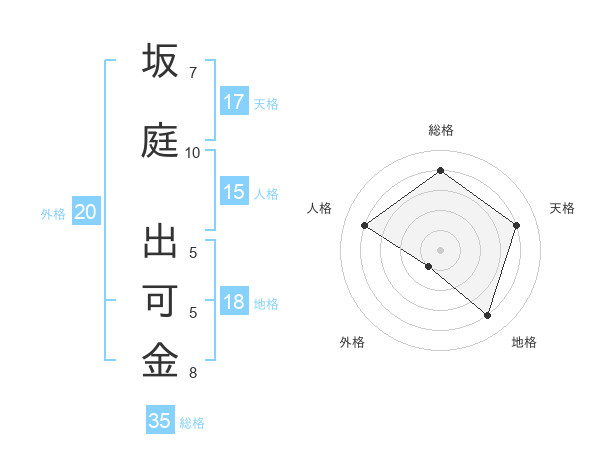 坂庭 出可金さんの総格は35画の4点!