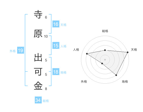 寺原 出可金さんの天格は16画の5点!