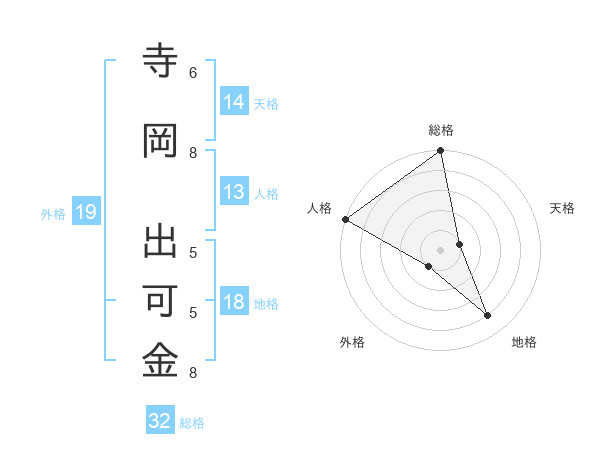 寺岡 出可金さんの総格は32画の5点!