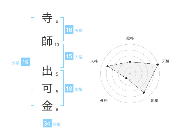 寺師 出可金さんの天格は16画の5点!