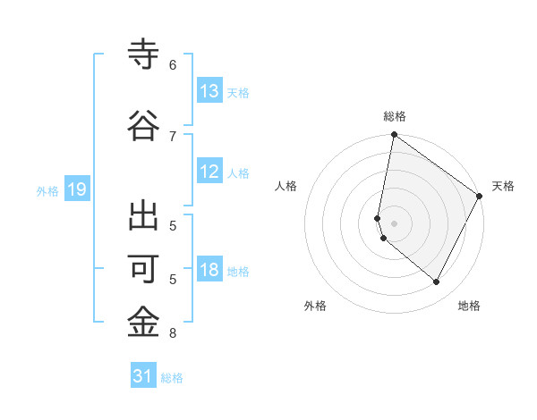 寺谷 出可金さんを姓名の画数から五運を鑑定