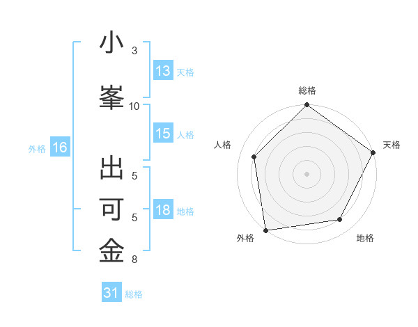 小峯 出可金さんを姓名の画数から五運を鑑定