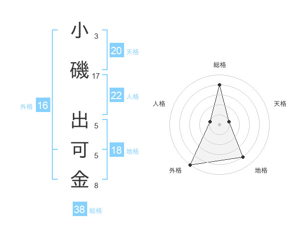 小磯 出可金さんの総格は38画の4点!