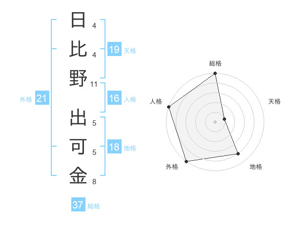 日比野 出可金さんを姓名の画数から五運を鑑定