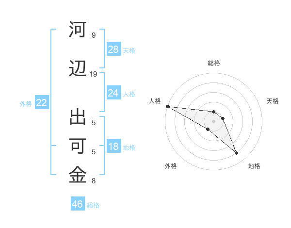 河辺 出可金さんの総格は46画の1点!