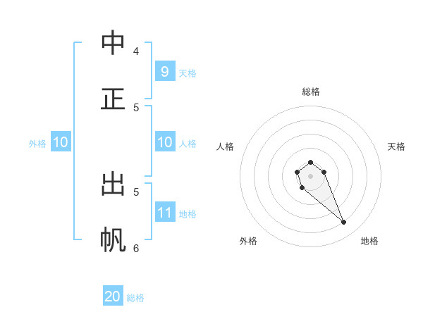 中正 出帆さんの総格は20画の1点!