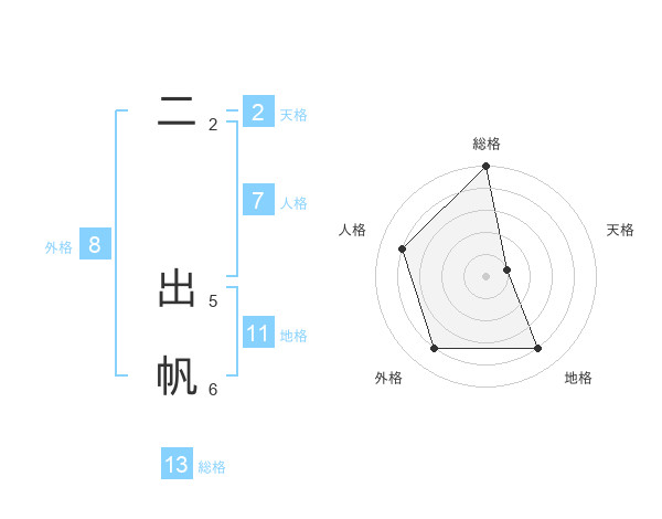 二 出帆さんの総格は13画の5点!