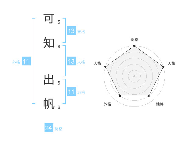 可知 出帆さんの天格は13画の5点!