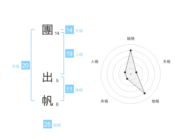 團 出帆さんの総格は25画の4点!