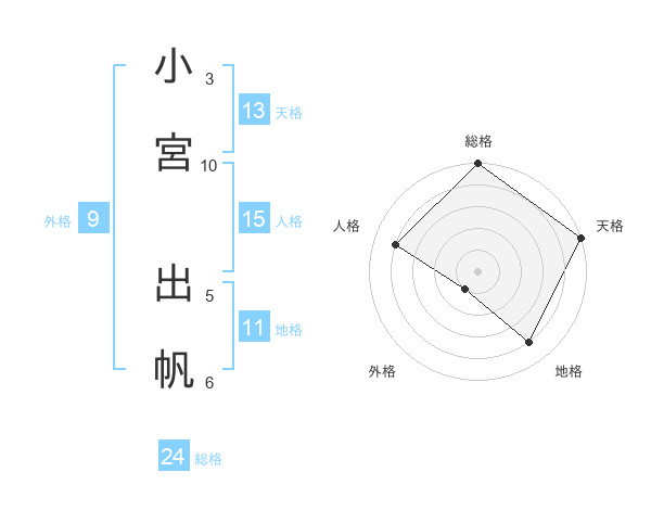 小宮 出帆さんを姓名の画数から五運を鑑定