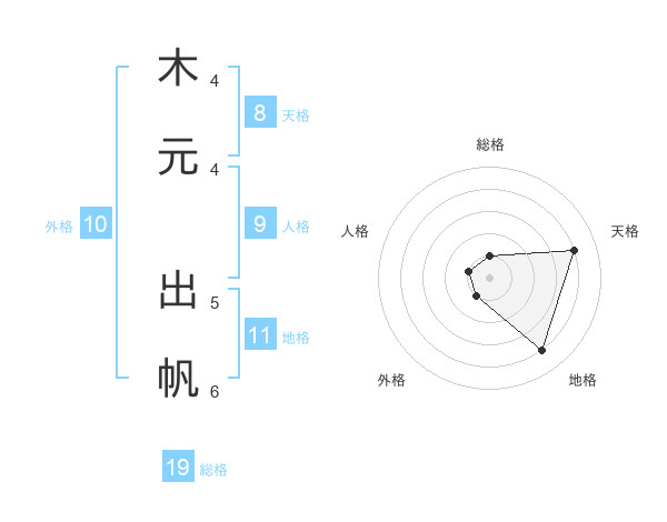 木元 出帆さんの天格は8画の4点!