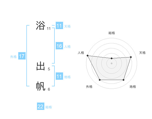 浴 出帆さんの総格は22画の1点!