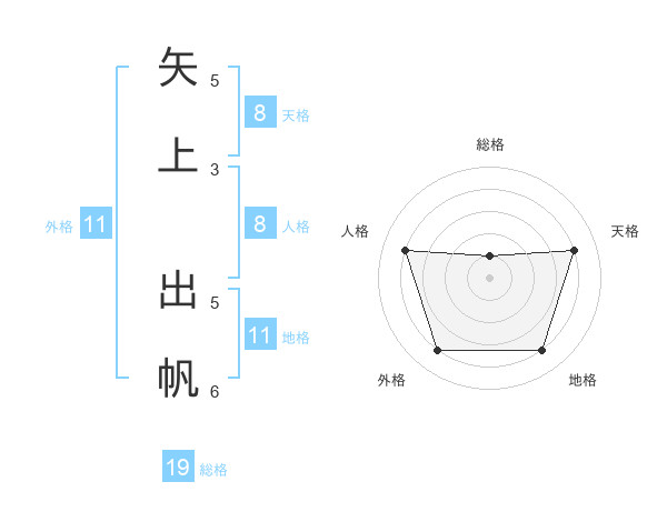 矢上 出帆さんを姓名の画数から五運を鑑定