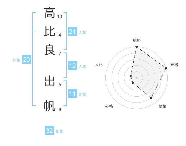 高比良 出帆さんを姓名の画数から五運を鑑定