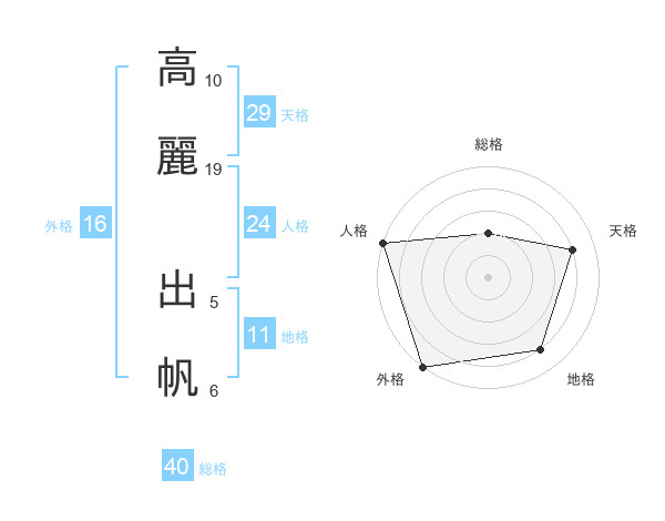 高麗 出帆さんの総格は40画の2点!