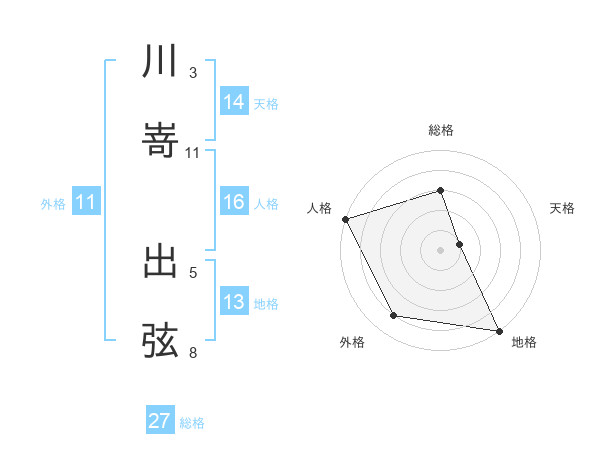 川嵜 出弦さんの外格は11画の4点!