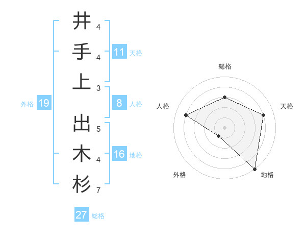 井手上 出木杉さんを姓名の画数から五運を鑑定