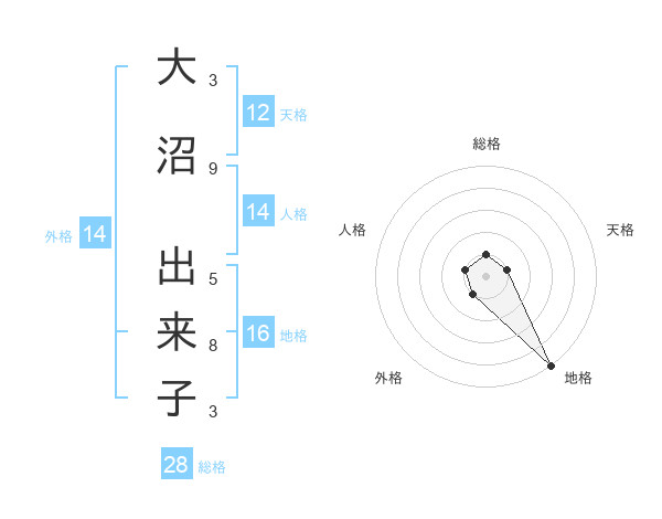 大沼 出来子さんを姓名の画数から五運を鑑定