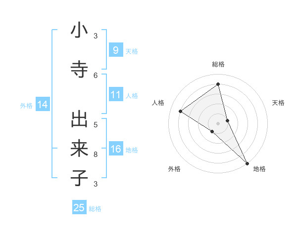 小寺 出来子さんを姓名の画数から五運を鑑定