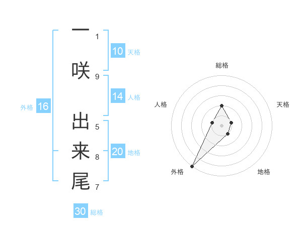 一咲 出来尾さんの外格は16画の5点!
