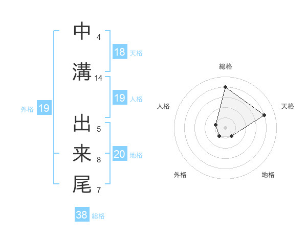 中溝 出来尾さんの総格は38画の4点!