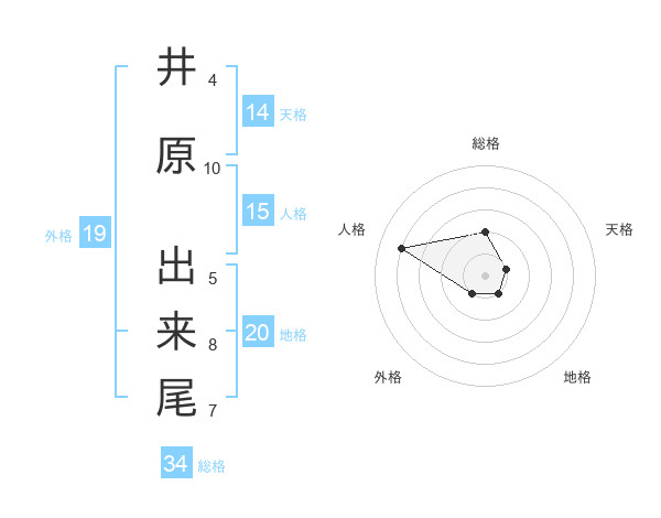 井原 出来尾さんを姓名の画数から五運を鑑定
