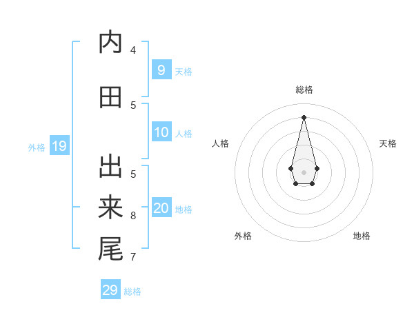 内田 出来尾さんを姓名の画数から五運を鑑定