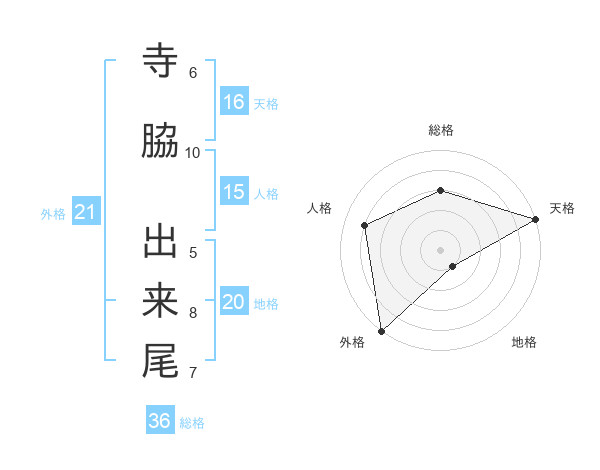 寺脇 出来尾さんを姓名の画数から五運を鑑定