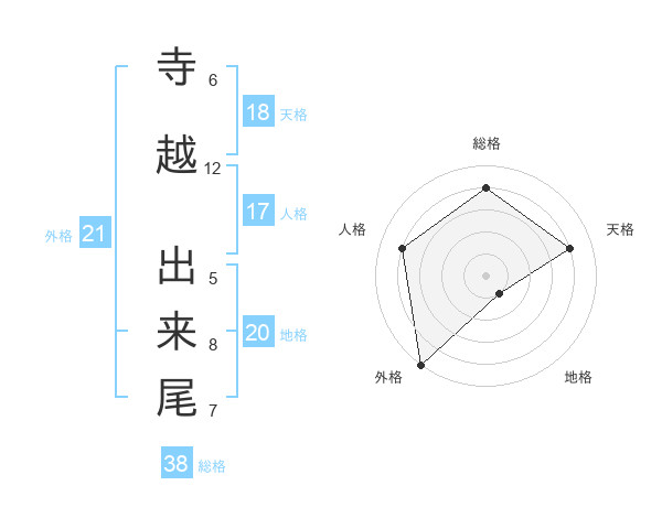寺越 出来尾さんの総格は38画の4点!