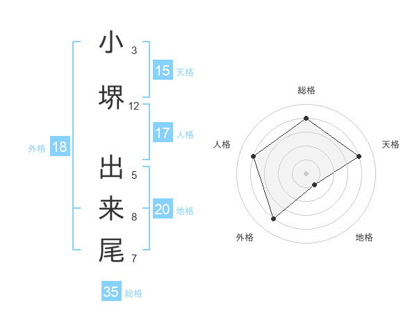 小堺 出来尾さんの総格は35画の4点!