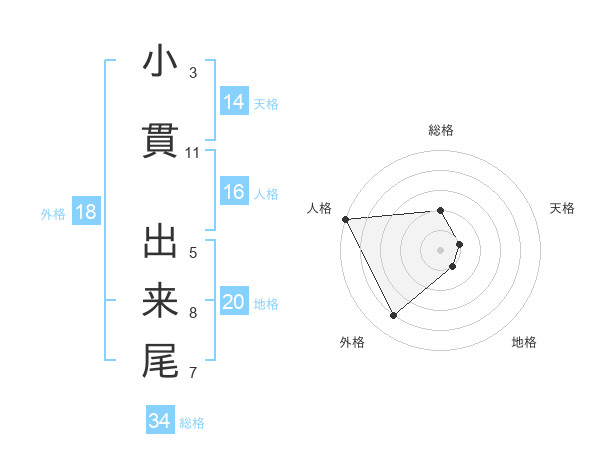 小貫 出来尾さんを姓名の画数から五運を鑑定