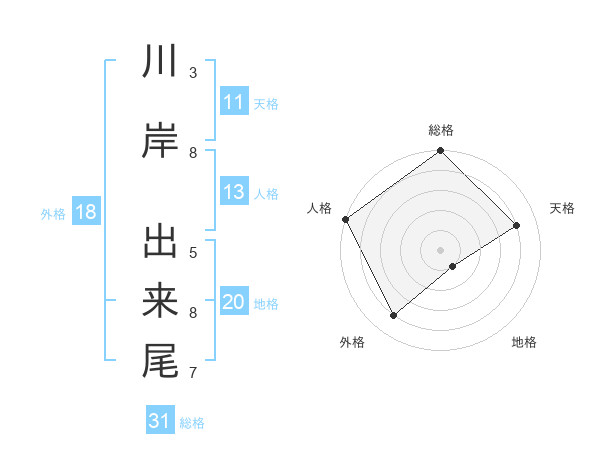 川岸 出来尾さんを姓名の画数から五運を鑑定