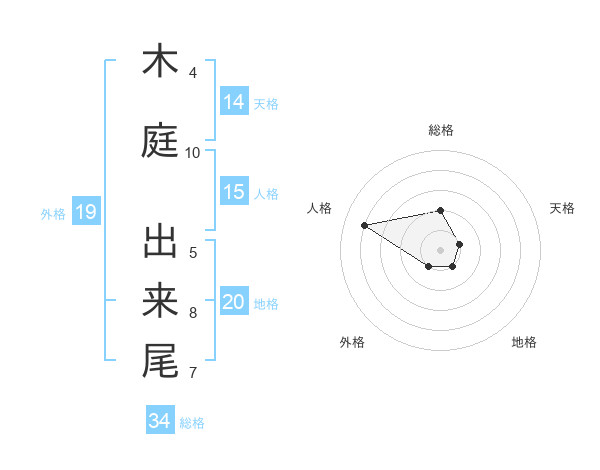 木庭 出来尾さんを姓名の画数から五運を鑑定