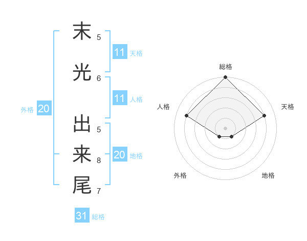 末光 出来尾さんを姓名の画数から五運を鑑定