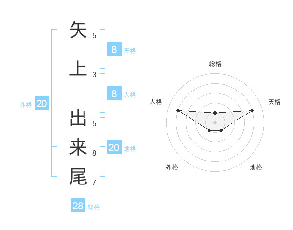 矢上 出来尾さんを姓名の画数から五運を鑑定