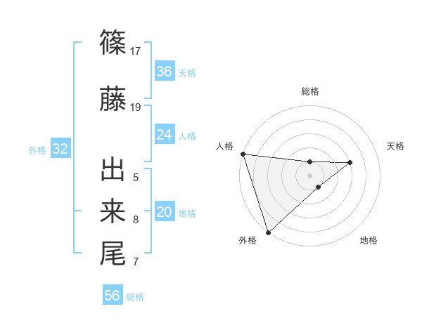 篠藤 出来尾さんを姓名の画数から五運を鑑定