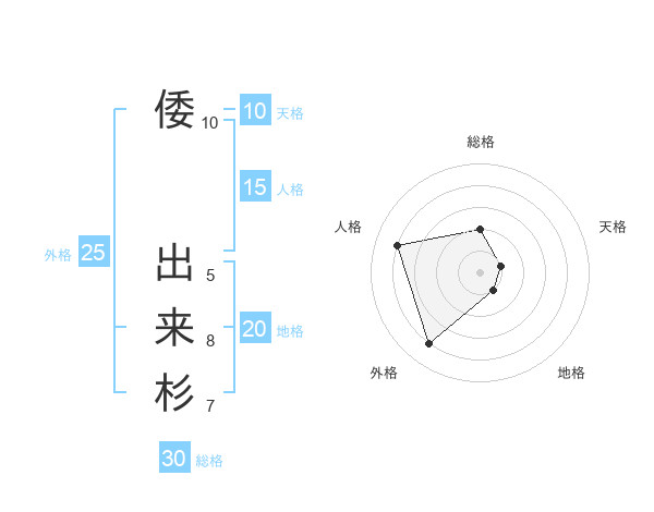 倭 出来杉さんの地格は20画の1点!