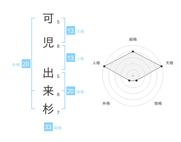 可児 出来杉さんの天格は13画の5点!
