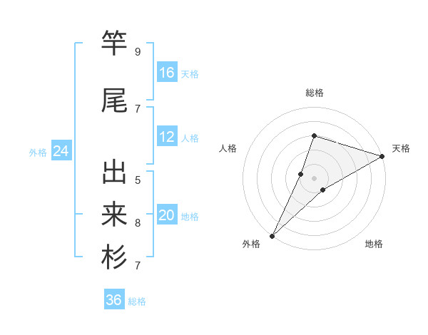 竿尾 出来杉さんを姓名の画数から五運を鑑定