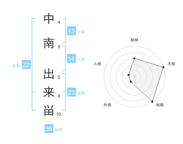 中南 出来畄さんを姓名の画数から五運を鑑定