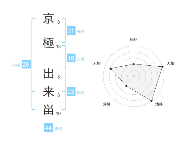 京極 出来畄さんの総格は44画の2点!