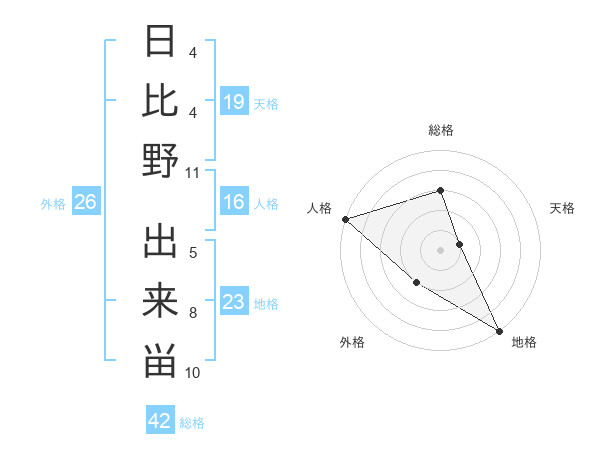 日比野 出来畄さんを姓名の画数から五運を鑑定