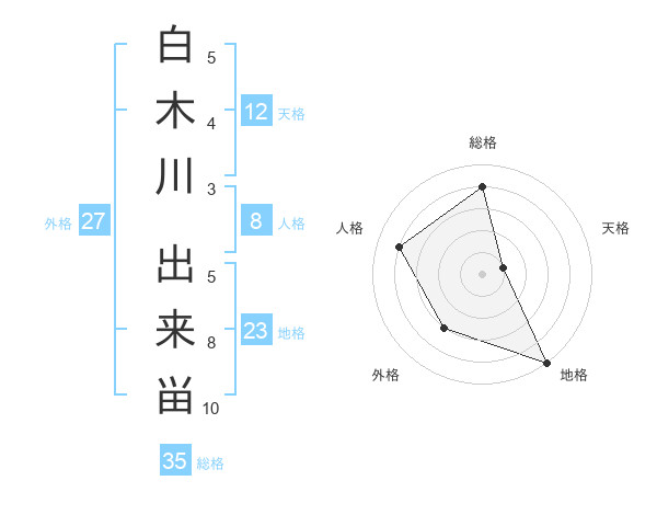 白木川 出来畄さんを姓名の画数から五運を鑑定
