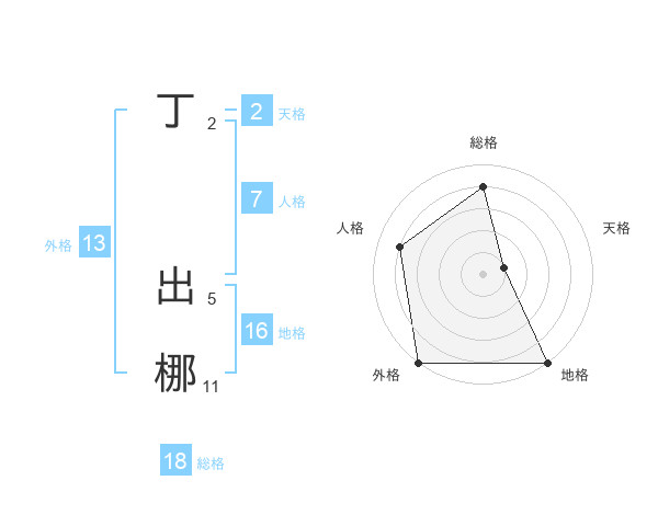 丁 出梛さんの外格は13画の5点!