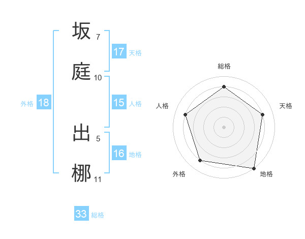 坂庭 出梛さんの総格は33画の4点!