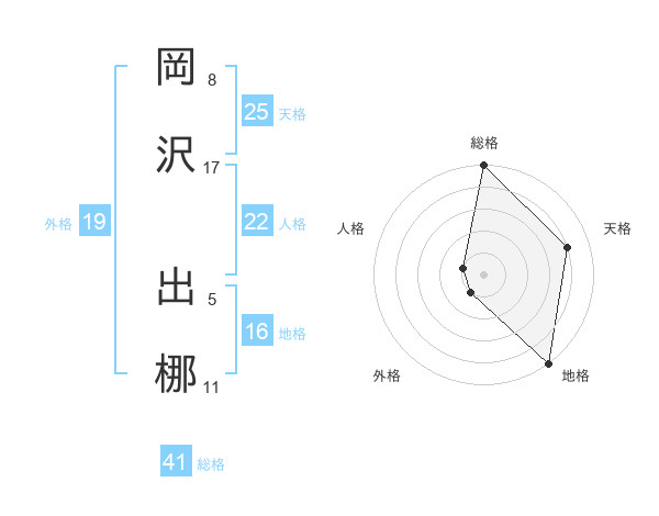 岡沢 出梛さんを姓名の画数から五運を鑑定