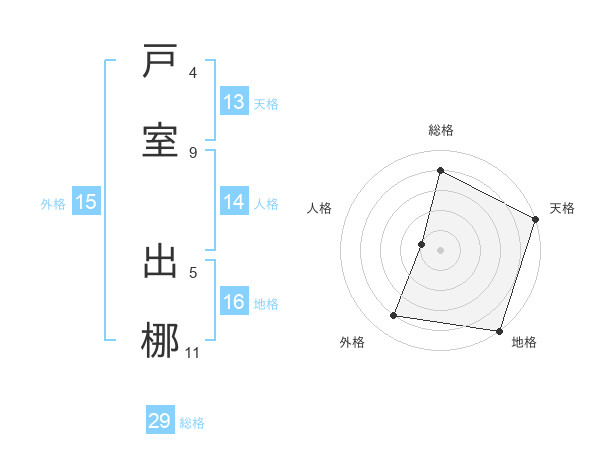 戸室 出梛さんを姓名の画数から五運を鑑定