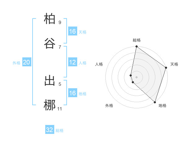 柏谷 出梛さんの天格は16画の5点!